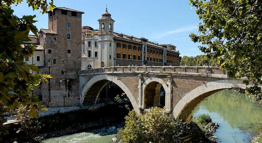 The Pons Fabricius (Italian: Ponte Fabricio, meaning "Fabricius' Bridge") or Ponte dei Quattro Capi, is the oldest Roman bridge in Rome, Italy, still existing in its original state. Built in 62 BC, it spans half of the Tiber River, from the Campus Martius on the east side to Tiber Island in the middle (the Pons Cestius is west of the island). Quattro Capi ("four heads") refers to the two marble pillars of the two-faced Janus herms on the parapet, which were moved here from the nearby Church of St Gregory (Monte Savello) in the 14th century.